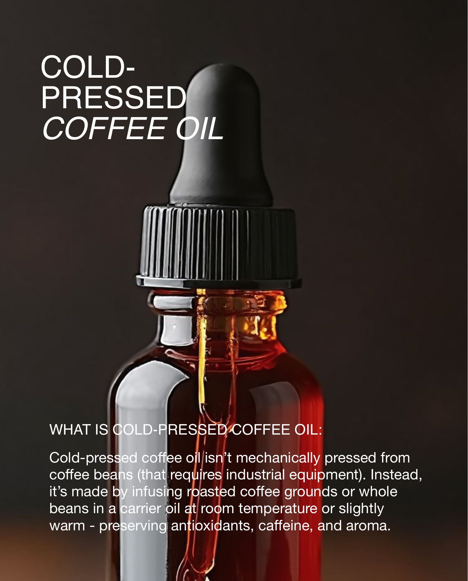 The coffee oil is created through a long, low-temperature infusion that preserves antioxidants, subtle caffeine compounds, and delicate aromatic notes. A method grounded in craft and patience. - Familiar, grounding, and deeply comforting.