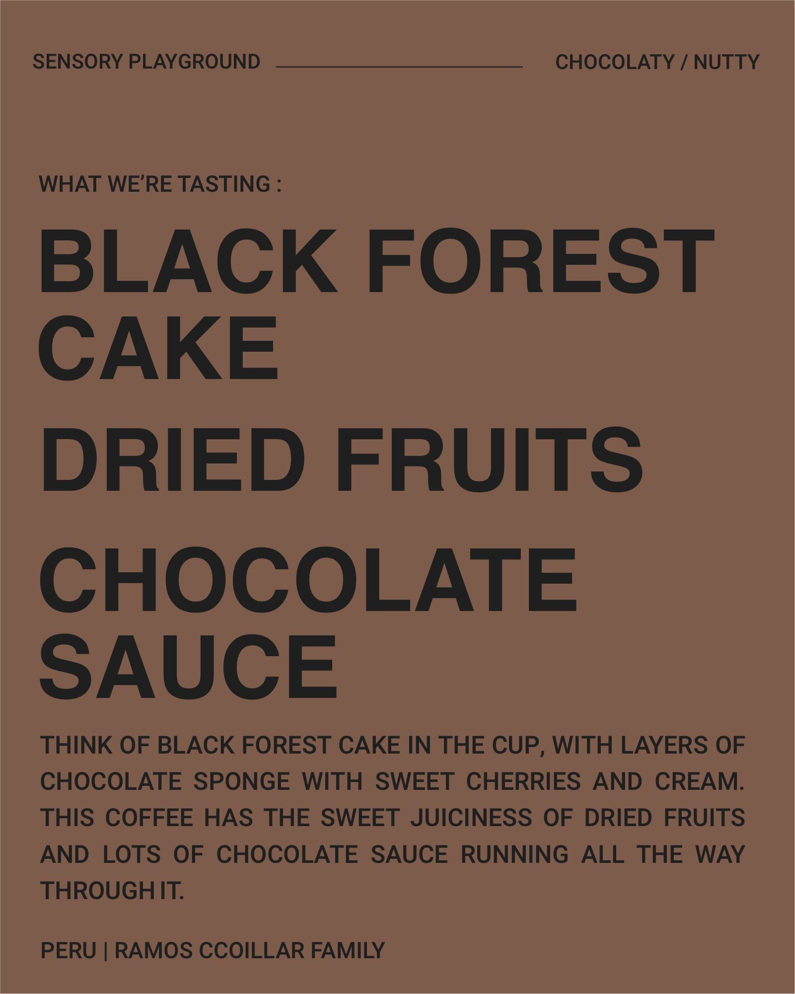 Tasting Notes: 🍰 Black Forest Cake · 🟤 Dried Fruits · 🍫 Chocolate Sauce