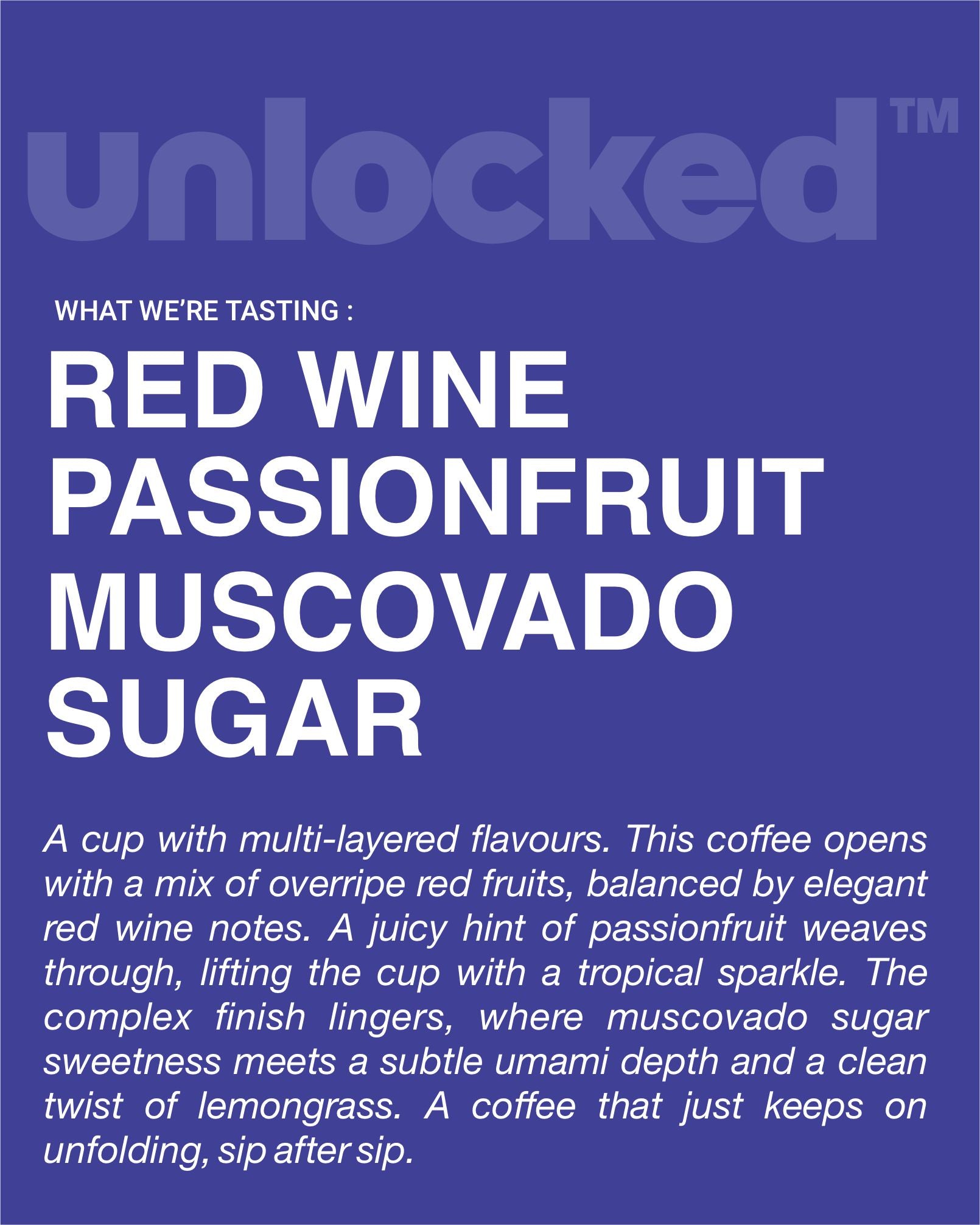Tasting Notes: 🍷 Red Wine · 🔴 Passionfruit · 🍯 Muscovado sugar